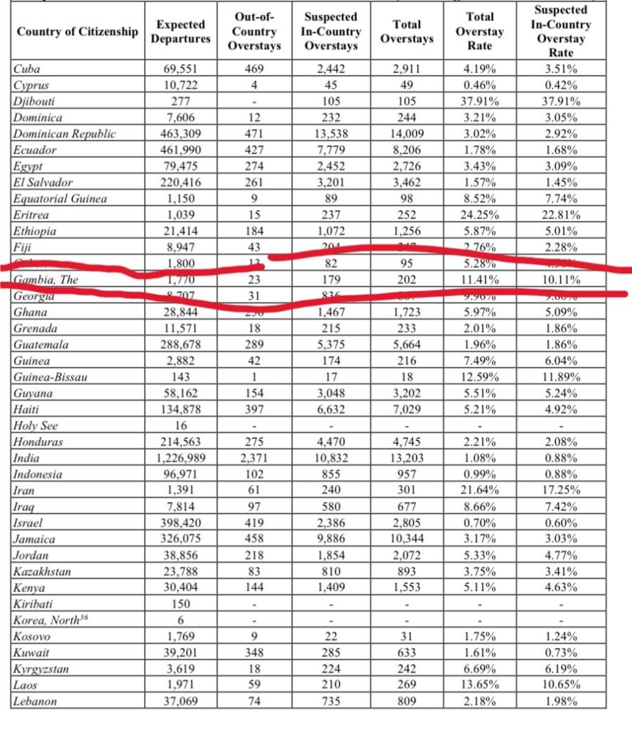 According to the U.S. Department of Homeland Security’s (DHS) overstay report, Gambians have historically recorded relatively high visa overstay rates, which has contributed to the partial visa suspension. The report highlights the following: