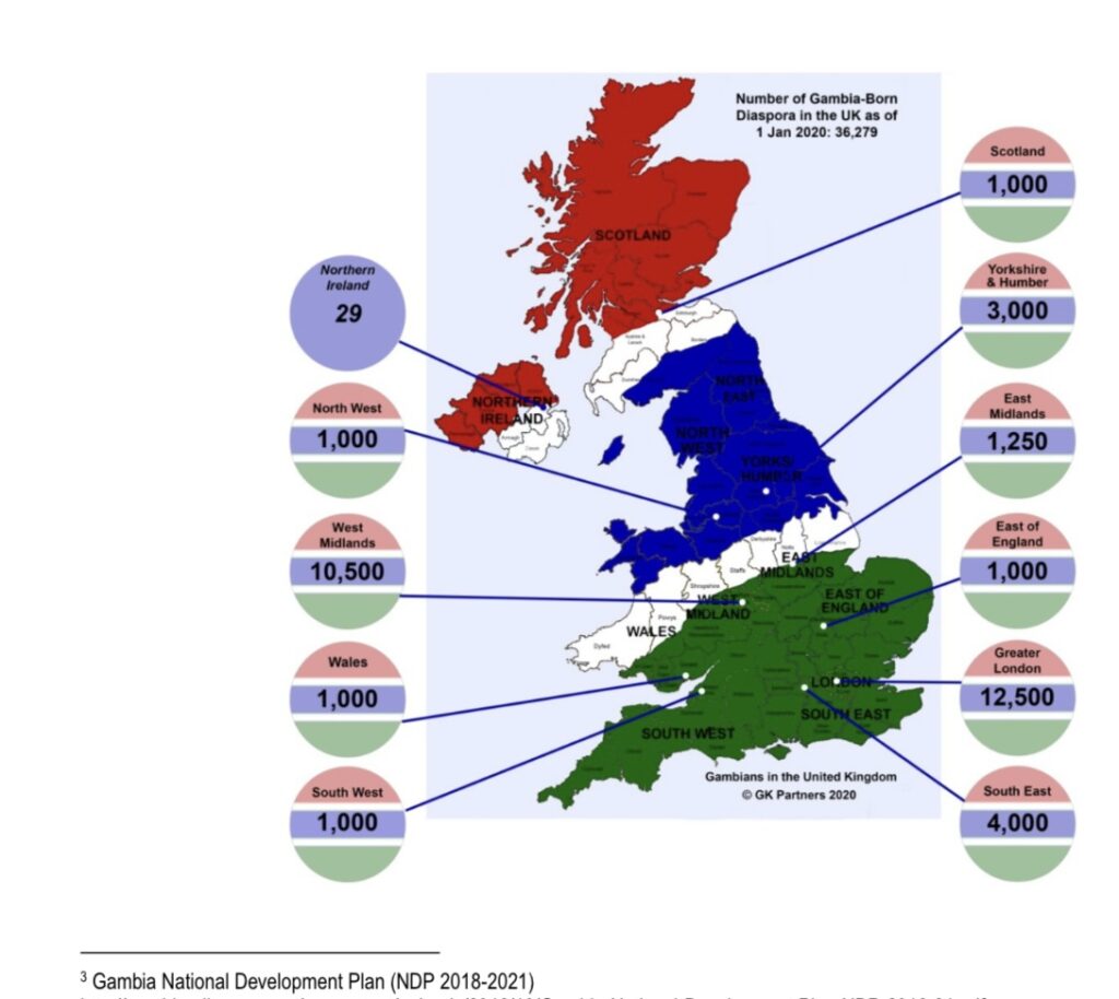 Notwithstanding, in May 2021 the MSDG Project produced a briefing paper for the National Assembly on diaspora voting. The body, led by Prof. Gibril Faal created 5 diaspora electoral constituencies based on the population distribution of Gambians in foreign countries and regions. In the Elections Bill 2020, Clause 14 provided for the registration of Gambians in the diaspora.