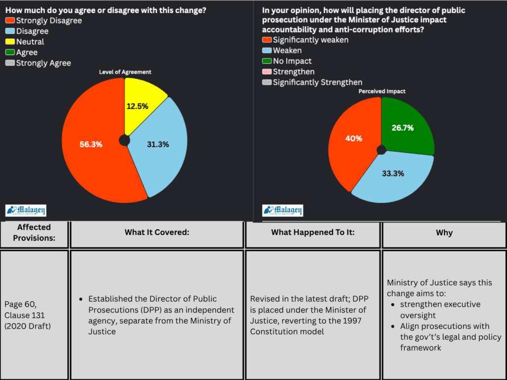 The majority of experts, 14 out of 16, do not support the changes, noting that as chief prosecutor, the director of public prosecution should not be subject to the control of the minister, who is a political appointee.