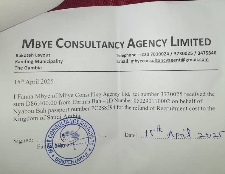 A Malagen undercover reporter contacted two major recruitment agencies – Mbye Consultancy and Gamjobs – posing as a prospective applicant.